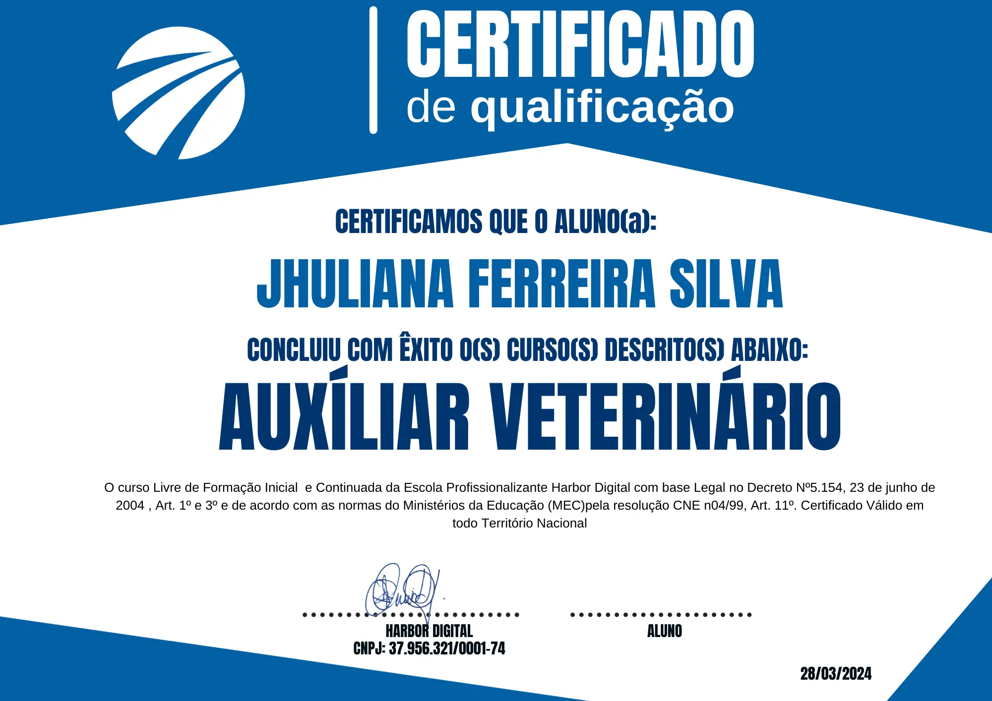 Mostre suas novas habilidades conquistadas e fortaleça seu currículo profissional. Faça o curso, ganhe o certificado e mostre para o mundo que você possui qualificação na área veterinária.