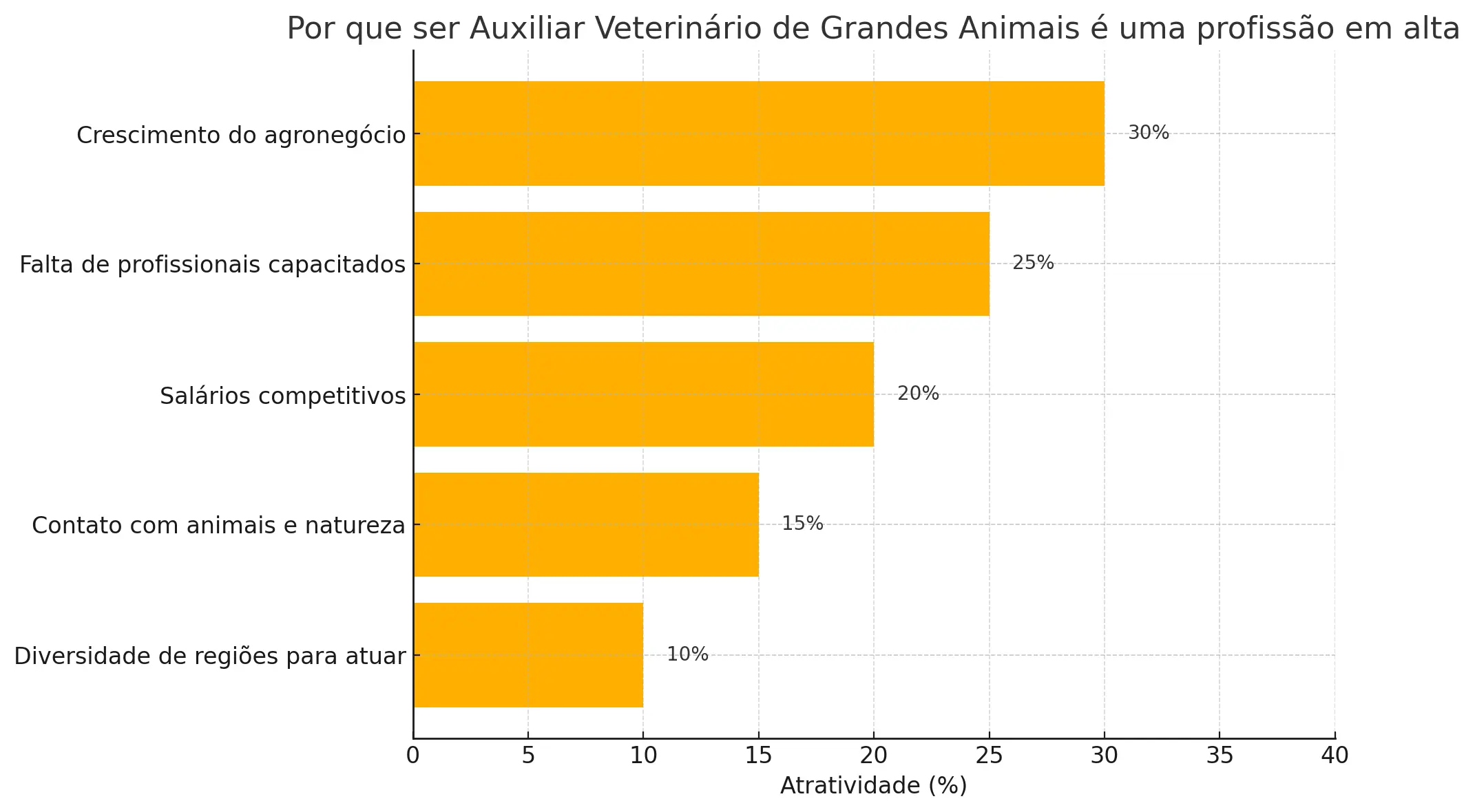 O auxiliar veterinário é o braço direito do veterinário em fazendas, haras, sítios e propriedades rurais. Ele cuida da alimentação, vacinação, manejo e bem-estar de animais como cavalos, bois, vacas, búfalos e muito mais. É uma profissão essencial no agronegócio, que cresce a cada ano.